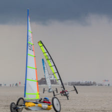 Kategorien: Blog | Dieser Artikel wurde am 30.10.2018 verfasst.Nach dem Fotografieren von Strandseglern im Jahr 2014 und 2015 bekamen wir 2015 das Angebot vom YCSPO, bei der Weltmeisterschaft 2018 zu fotografieren. In unserem Bericht zu Weltmeisterschaft werden wir den Schwerpunkt auf das Fotografieren legen. Mehr Hintergrundinformation zum Segeln und zur WM findet Ihr unter: http://www.ycspo.de/ Am 28.09.18 machten wir uns auf den Weg nach St. Peter – Ording. Nach der Einweisung am Samstag für das Fotografieren starteten Sonntag und Montag die ersten Rennen. Es ging hinaus auf den Strand, keine optimalen Bedingungen für die großen Segler, es starten überwiegend die Klassen mit den kleinen Seglern im vorderem Strandbereich. Danach wurde das Wetter problematisch, teilweise herrschten Windgeschwindigkeiten mit über 100 km/h und die Beschaffenheit des Strandes lies durch starke Regenfälle (Untergrund zu weich) keine Rennen zu. Kurz gesagt, die Bedingungen waren alles andere als optimal. Der dritte Tag, um ein Rennen durchzuführen, war der Donnerstag. Jetzt hatten wir von der Fotogruppe versagt! Bedingungen total falsch eingeschätzt. Wir dachten, zu wenig Wind und Untergrund nicht passend. Blöd, wir waren bei den Rennen nicht dabei. Keine Bilder….sehr ärgerlich! Vierter und letzter Tag, der Freitag. Die Sonne zeigte sich, der Wind war zu Beginn gut, lies aber später nach. Es reichte trotzdem, um noch ein paar Bilder zu fotografieren. Fazit: Strandsegeln ist ein außergewöhnlicher Extremsport. Viele Bedingungen müssen stimmen, um optimalen Fun zu haben. Es ist ähnlich wie bei anderen Natursportarten die auf Wind und Wetter angewiesen sind, doch das macht diese Sportarten so besonders. Wir hatten im Vergleich zu 2015 nicht so optimale Bedingungen zum Fotografieren, was aber einfach dem Wetter geschuldet war. Und so mussten wir abreisen mit dem Gefühl, einfach mal wieder Strandsegler zu fotografieren um noch mehr und noch bessere Actionfotos zu machen. Einen besonderen Respekt bringen wir dem Verein YCSPO entgegen, der diese Veranstaltung mit seinen Mitgliedern durchgeführt hat. Da haben viele mitgeholfen, und ohne die Frauen aus dem Verein (wie bei vielen Vereinen) hätten die Männer das wohl nicht geschafft. Das war eine tolle Veranstaltung, nur das Wetter hätte sich etwas mehr Mühe geben können. Unser Tipp für alle: Strandsegeln einfach mal ausprobieren, egal ob Ihr selber segelt oder fotografiert. Ein toller Sport ! Länder, Klassen u. Mannschaften, die die Weltmeister stellen: Alle Klassen: Mini Frankreich Standard Frankreich Klasse 5 Frankreich Klasse 3 Belgien Klasse 2 Frankreich Ergebnisse Mannschaften: Standard Frankreich Klasse 5 Frankreich Klasse 3 Frankreich Klasse 2 Frankreich Team Mini Frankreich Da haben unsere Nachbarn aber richtig Gas gegeben. Wir freuen uns mit Ihnen!